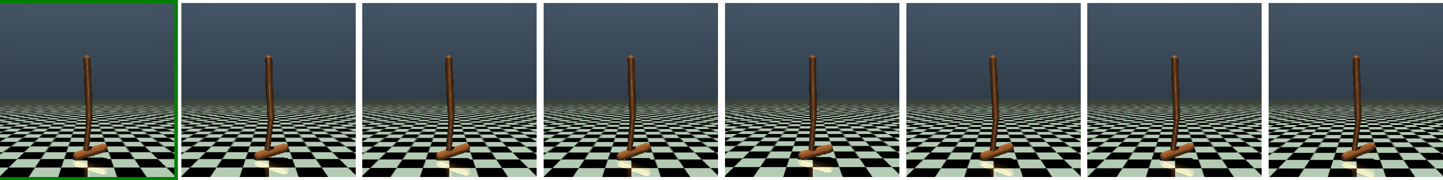 We evaluate PLOff on four hand manipulation tasks (Rajeswaran et al., 2018): nailing a hammer, opening a door, manipulating a pen and relocating a ball. We also evaluate PLOff on MuJoCo locomotion tasks (Brockman et al., 2016) where the goal is to maximize the distance traveled: Walker2d, HalfCheetah and Hopper. We provide visualization of the environments in Figure 2. For each environment we consider multiple datasets from the D4RL benchmark (Fu et al., 2020). On hand manipulation tasks, these datasets are the following, ”human”: transitions collected by a human operator, ”cloned”: transitions collected by a policy trained with behavioral cloning interacting in the environment + the initial demonstrations, ”expert”: transitions collected by a fine-tuned RL policy interacting in the environment. On locomotion tasks, the datasets are the following, ”random”: transitions collected by a random policy, ”medium-replay” the first 1M transitions collected by a SAC agent (Haarnoja et al., 2018) trained from scratch on the environment, ”medium” transitions collected by a policy with suboptimal performance, ”medium-expert”: transitions collected by a near optimal policy + transitions collected by a suboptimal policy. To have comparable range of rewards between environments, we scale offline rewards by scaling them in by and learn a policy on this scaled reward.