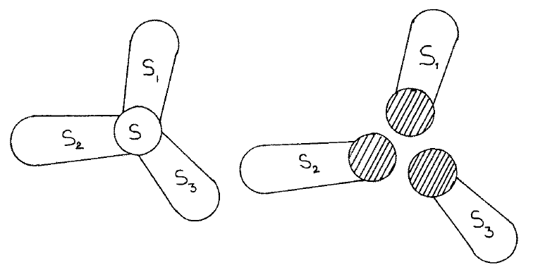 Suppose that we have an instance of a 3-coloring on a graph . We notice that since every vertex from is connected to every vertex in , this means that the clique covering of is the same as in , namely three. This construction can be done in polynomial time. We now show how we can create a tree decomposition of tree-clique width at most 3 in the following way. We create four bags and each one of them contains the graph plus one more vertex from , see Figure 2. Clearly this tree decomposition has tree-clique width at most 3 since every is covered by the three cliques that cover . Additionally, is a valid tree decomposition since and for every edge from the set to , in graph , there exists a bag in containing both and . Finally, it is apparent that such a tree decomposition respects the subtree connectivity requirement.