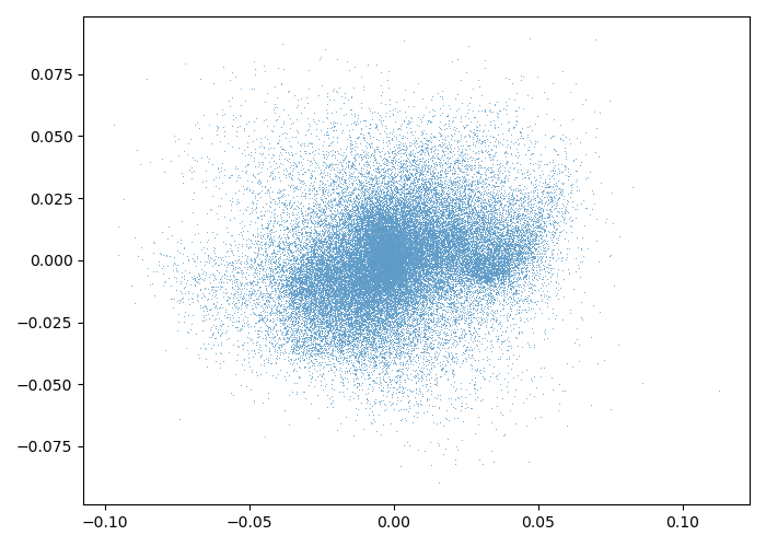 As the gradient deviation distribution is high-dimensional, demonstrating and verifying its symmetricity is in general intractable. We therefore adopt random projection onto a 2D for the visualization, which is also adopted by Chen et al. (2020). Our experiments reproduce their observation that the gradient deviation distribution approximates symmetry during training with DP-SGD (see Figure 6 and 7). We verify that this property is also valid for DP-SGD with RS (see Figure 8 and 9). We have repeated the experiments 10 times, all results are qualitatively the same as presented here.