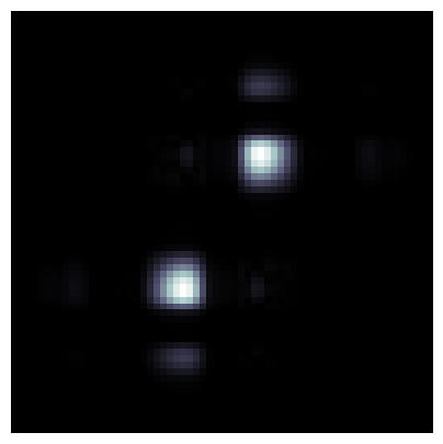According to Proposition B.6, each atom , for , is supported in a square window of size included in the top-right quadrant of the Fourier domain. Similar results can be obtained for the three remaining quadrants, with , and . We would like to deduce from Proposition B.6 that the discrete filter satisfies the Gabor property (203). However, as mentioned in Remark B.5, (243) is only an approximation. In fact, the Fourier support of is contained in four square regions of size (one in each quadrant), its energy becoming negligible outside the top-right quadrant when increases. Nevertheless, employing, in the first stage, a specific pair of low-pass filters satisfying the one-sample delay condition [41] yields near-analytic solutions even for small values of . We therefore consider (203) as a reasonable approximation if .