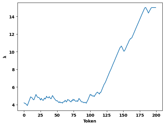 Algorithm 2 gives our online algorithm for adaptive choosing . For the optimization problem (4), the optimal solution depends on (i) the prompt , (ii) the LM , and (iii) the realized generation of the tokens. Algorithm 2 uses a different over time, and ideally, it aims to have quickly. In this way, it learns the optimal online and adaptively (to the prompt). The idea of Algorithm 2 is to perform an online gradient ascent algorithm on the Lagrangian dual function for the dual variable , and uses to approximate the optimal dual variable To see this, we first introduce the Lagrangian of the optimization problem (4) as follows where the dual variable is denoted by ,