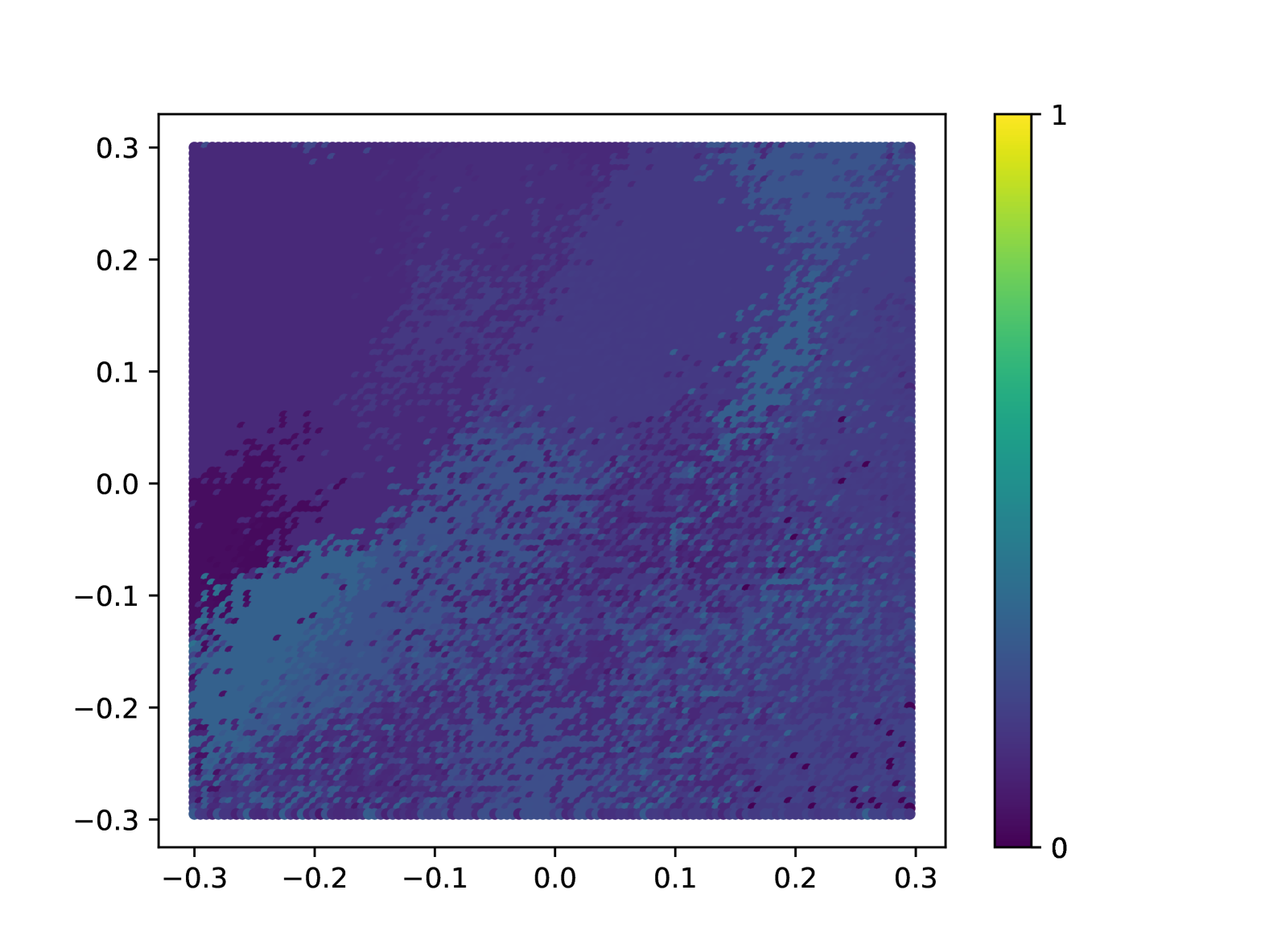 To illustrate this smoothness, we visualize the score landscape for a single dataset in a reduced-dimensional latent space. Specifically, we project the latent space onto a 2D subspace spanned by the first two principal components. We then uniformly sample points on a grid within this 2D subspace, decode them into equation DAGs, and use these equations to predict target values. The corresponding error values are then computed and visualized using a color map over the 2D latent space.