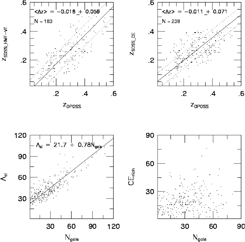 Figure 14 shows the redshift distribution for different richness classes using both the AK and VT. The redshift cutoff in each case is generally in agreement with that seen in the selection functions (§6).