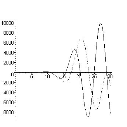The different solutions for correspond to different initial profiles in the bulk (Figure 3). In this sense, we have not solved the problem yet. In order to find the solution that corresponds to a given initial profile, we again sum solutions with different . Fortunately, we find that the different solutions give the same solution on the brane. This indicates that the recovery of the 4D behavior does not depend on the choice of the initial profile, as long as the initial profile does not contain large KK masses.