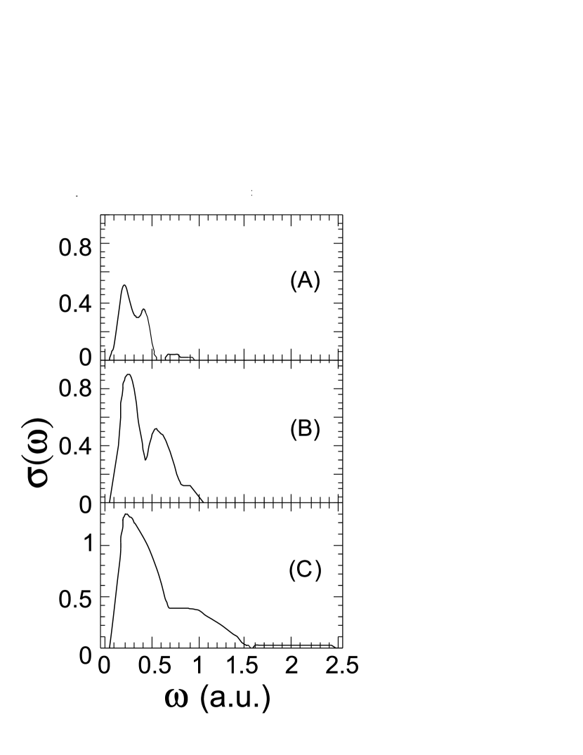 As the amount of the disorder increases, the oscillations of optical conductivity become less pronounced. The point is that the imaginary part of the memory function and Im increase with so that the -peaks in eq.(13) acquire a sizeable half-width . Thus, the contributions of the structure factor add up from a range of wave numbers and partially cancel each other.