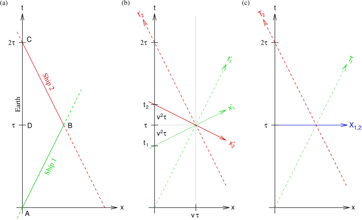 Selleri 66, Selleri 67, Selleri 74 discusses alternative synchronization conventions in a very specific way. He starts by deriving the most general transformation, admitting that a priori any convention can be used. His free parameter is related to our by the simple equation . In the case of the rotating disk, however, the author does not cleanly distinguish between local and global effects. He claims that, due to symmetry, the globally anisotropic speed of light must necessarily also lead to a local anisotropy so that global synchronization must be used. This would only be true in the absence of any time-lag. Our discussion shows, that isotropic coordinates can explain the global anisotropy, if the time-lag is taken into account. Selleri 66, Selleri 67, Selleri 74 claims that the “global” or “absolute” synchronization (, ), which leads to what he calls “inertial transformations”, is more natural than the special relativistic convention. In order to support this view he additionally proposed an example with linear motion. The situation is very similar to the experiment we discussed in Sec. 9.3, see Fig. 9. On the two spaceships we now have one clock each which are initially synchronized in the laboratory frame , using the standard convention. Even after the acceleration stops, they will remain to be synchronized in this system. Seen in the comoving inertial frame , however, the synchronization will violate the standard Einstein convention. The author uses this as an argument for the existence of absolute simultaneity and thus for the global synchronization. We do not find this very convincing, because this kind of synchronization can be achieved only by first synchronizing in the laboratory frame or by later somehow referring to that frame. It is no surprise that if we use in order to synchronize clocks, they will be synchronized in exactly this frame. With measurements in the moving inertial frame , this “absolute” synchronization could not be defined. Actually, the system is exactly equivalent to the laboratory frame, so that the same conventions can be used in both. We emphasize that we do not argue against the possibility of using this global synchronization convention. The discussion of Selleri 66, Selleri 67, Selleri 74 indeed shows very convincingly that this can be done and is in certain cases more convenient than the standard convention. We merely do not accept the absolute nature of this convention, nor the claim that SR cannot explain the Sagnac effect. If any convention plays a special role in a given inertial frame, without referring to other frames, it is the Einstein convention because of its isotropic nature. This still holds for the rotating disk as long as no global properties are probed.