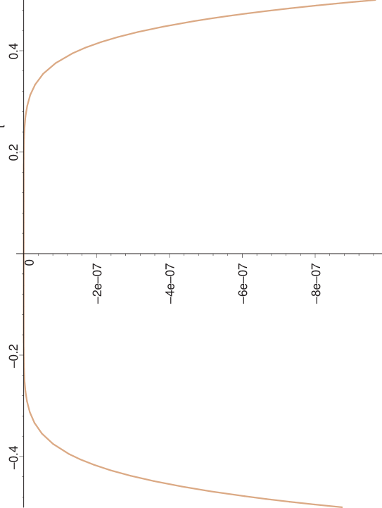 The total accuracy of the computation given by this choice of trial functions is comparable to the accuracy of the solution in terms of the power series and is limited only by the numerical precision of the calculation. Order by order the relative error in determining coefficients with respect to epsilon is shown on figure 4. Both graphs show the same solution at different scales. Clearly the precision of the computation of decreases at higher orders. From the graph on the left it is evident that is determined with an error of per cent while the graph on the right shows that can be calculated more accurately than parts in . This trend does not present a problem since the absolute value of the contributions decreases at high orders thus compensating for the loss of accuracy.