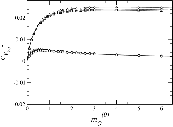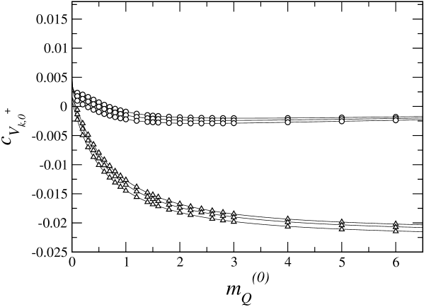Extending the above procedure to the one-loop level, and (0) errors are removed. This calculation was carried out in Ref. Aoki:2003dg , and the numerical results depending on the quark mass are given in terms of an interpolation formula. Here we only quote the result of the wave function renormalization for the later use. Defining the wave function renormalization by