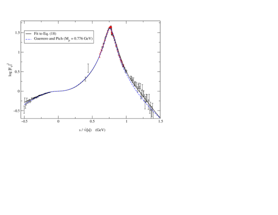 Note that the only free parameter in this expression is . In spite of including the resonance only, and as can be seen in Figures 3 and 4, it does an excellent job in describing experimental data up to , showing, once again, the compelling role of chiral symmetry, vector meson dominance, analyticity and unitarity in the description of form factors.