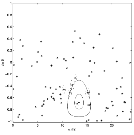 - [39] This is given in Ref. [10] as The several events at declinations near have small errors in the direction, and do not intersect the oval regions.