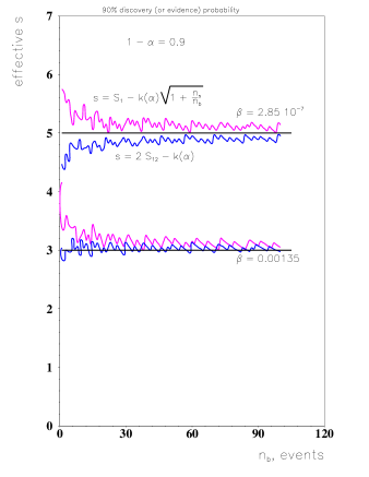 where : ; ; ; (as an example, Tab.28.1Β [3]). The effective significance in the equation (8) (i.e. corrected significance , corresponding the discovery probability ) has the form