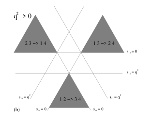 where stand for the three non-ordered permutations of . The relevant regions are shown in Fig. 2(b) and correspond to the regions (2a,3a,4a)+ of the kinematic plane, Fig. 1.