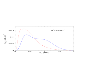 and are polynomials in . A distinctive feature of the FKS model is that the authors modify the photon wave function at large using a shifted Gaussian, : [10]. All the free parameters in the FKS have been successfully fitted to and real photoabsorption data [10] and the model has been used to predict [11]. In its present form, the FKS model does not include saturation effects. We use this fitted dipole cross-section to make a no-free parameter predictions for DVCS.