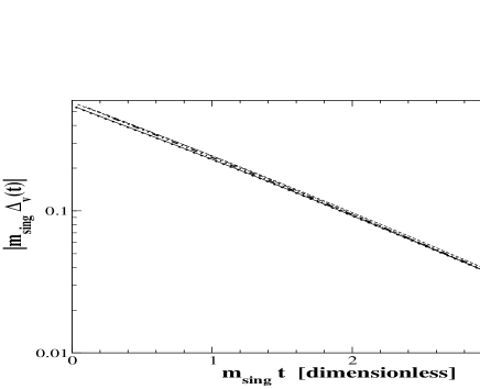 and is positive definite. For a bare propagator, the pole mass, , is the same as the bare mass occurring in the Lagrangian. However, for an interacting particle, the pole mass can have both tree level and dynamically generated contributions. The real pole corresponds to the presence of a stable asymptotic state associated with this propagator. This does not imply that this state corresponds to an observable physical particle: provided the Kugo–Ojima scenario holds, all states belonging to a quartet representation of the BRST-algebra are excluded from the physical subspace, , which contains only colorless singlets. Thus two-point correlations of colored fields may develop real poles in momentum space without contradicting confinement Oehme:1994pv . In lattice calculations Montvay:cy and other non-perturbative approaches HollenbergBurkardt , the exponential decay in Eq. (6) is used to extract hadron masses and other observables from the large time behavior of appropriate correlators.
