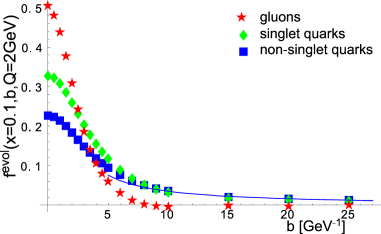 for the valence quarks, with no gluons nor sea quarks at the scale . Note that the functional dependence in in Eq. (2) factorizes in Eq. (1). Thus, it is convenient to denote and present the results for the the evolution-generated part .