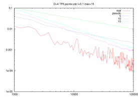The estimators , and are not always proportional to the classical estimate, and, in some cases they decreases quite faster with than the classical estimate does. They never decrease slower than the classical estimate, though, and one can use that as follows. One monitors the ratio of , for example, to the ‘classical’ error estimate, and after a certain point212121which depends on the resources of the user., the ‘classical’ error is only estimated and multiplied with that ratio. This is a purely linear algorithm and therefore very fast. Caution has to be exercised, though, in the way the critical ration is chosen, in order to avoid configurations where the estimators acquire a very low value for some exceptional value of .