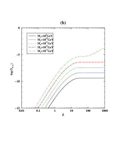 In thermal scenario we assume that the out-of-equilibrium decay of the heavy right handed Majorana neutrinos to leptons and Higgses produce a net lepton asymmetry [8]. We further assume a normal mass hierarchy, among the right handed Majorana neutrinos and . In this scenario, while the heavier neutrinos and decay, the lightest right handed neutrino is still in thermal equilibrium. Any -asymmetry thus produced by the decay of and is erased by the lepton number violating interactions mediated by . Therefore, it is reasonable to assume that the final -asymmetry is produced by the out-of-equilibrium decays of only. A partial -asymmetry is then transformed to -asymmetry via the high temperature sphalerons which are in equilibrium at a temperature to . Below the electroweak phase transition (), the sphaleron transitions fall quickly out of thermal equilibrium. Therefore, the B-asymmetry produced until at the scale of is the final -asymmetry of the universe that is observed today.