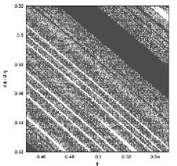 The reason for which the flat universes with scalar field are non-chaotic lies in lack of invariant measure of chaotic behavior in the general relativity Szydlowski and Krawiec (1996); Motter (2003). In general the standard chaos indicators like Lyapunov exponents or Kolmogorov-Sinai entropy depends on time parameterization. In general relativity there is freedom of choice of the lapse function which defines reparameterization of time. The Hamiltonian is given modulo the lapse function. Therefore if we consider the Hamiltonian FRW system with scalar field on zero energy level it is possible that in the Hamiltonian constraint i appear only in the combination . Hence the motion of the system takes place in the 3-dimensional phase space on some 2-dimensional submanifold. For any value of coupling constant and general class of potentials there is no place for chaos (even the models with the cosmological constant).