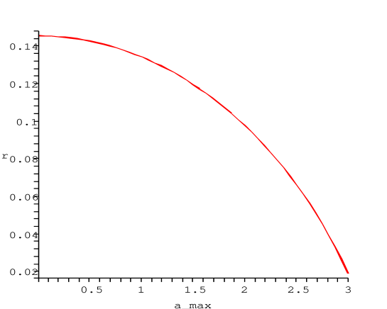 The spectral index decreases monotonically with . Note that for small axion vevs, the spectral index approaches the result for -inflation, i.e. . However, since we expect that initially the axion vevs are evenly distributed in the interval , inflation will not be maintained for another -foldings when the axions are this far down the potential.