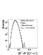 These mixed events are then subjected to the same fit procedure as the real events. By construction, the mixed events on average have the same particle ratios as the real events, but no internal correlations. To quantify the relative contribution of dynamical fluctuations , the r.m.s width of the mixed event distribution is subtracted from the r.m.s width of the real event particle ratio distribution:
