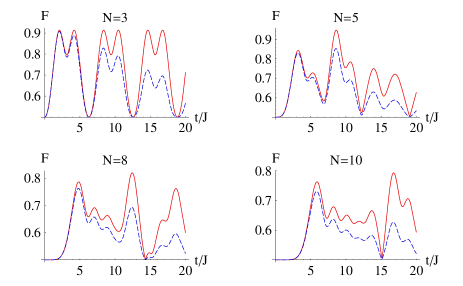 It is known that macroscopic systems are more fragile under the influence of the decoherence environment. In the situation of local independent decoherence environment, this can be demonstrated in an explicit way as follows. The phenomenological analysis solution of the quantum master equation in Eq.(15) can be written as . And the ideal state without decoherence is . If the time is short enough, the difference between the real and ideal state of the central system is . Therefore, it is obvious that the state deviation will become larger as increases for most kinds of decoherence model.